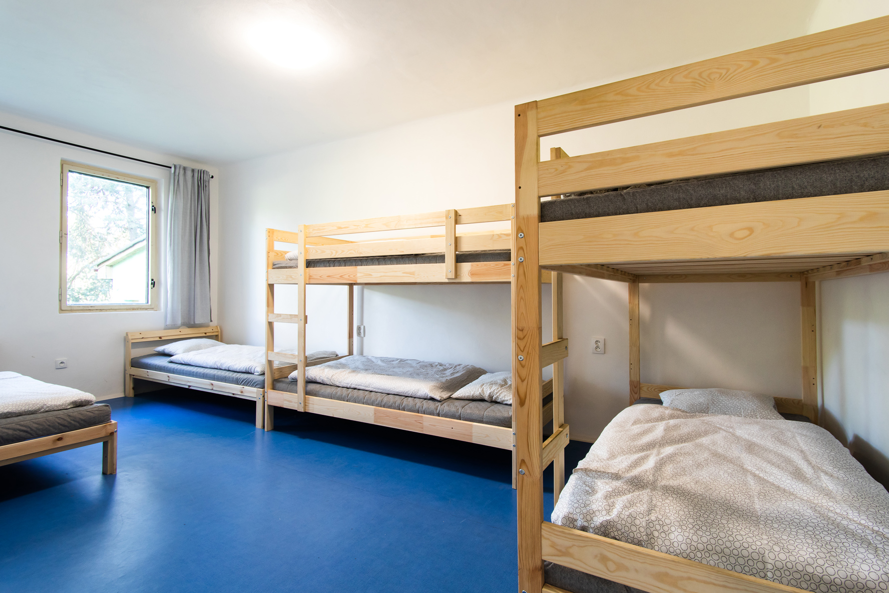 90 lůžek ve dvou a šestilůžkových pokojích ve čtyřech zděných budovách