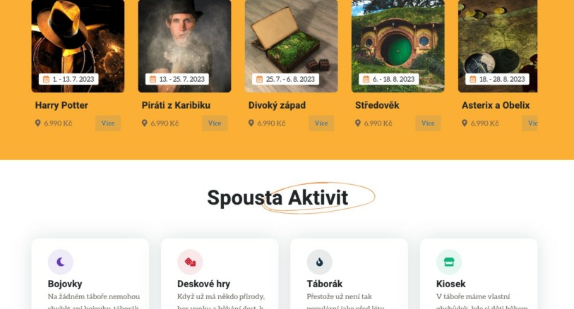 Přípravy na dětské tábory 2022 jsou tu! Máme zveřejněné jednotlivé běhy a k nim celotáborové hry. Můžete se těšit na Indianu Jonese, Harryho Pottera, Jumanji, Hobita. Nově přidáváme pátý turnus – Poslední misi. Děti se mohou zase těšit na skvělou zábavu, krásnou přírodu, bezva partu…