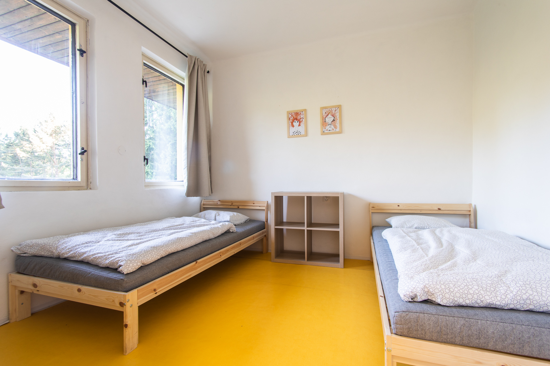 Žlutý domek má celkovou kapacitu 28 lůžek. V roce 2019 byl kompletně rekonstruován. Domek je rozdělen do dvou půlek. Každý polovina má jeden dvoulůžkový, dva šestilůžkové pokoje a koupelnu s umyvadly a toaletou.