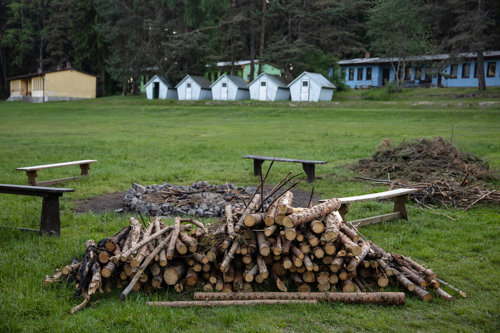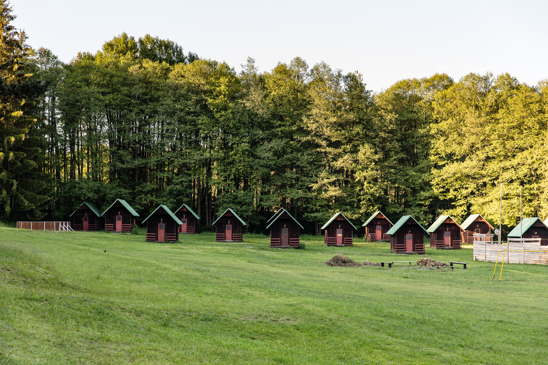 V areálu stojí 20 klasických táborových čtyřlůžkových chatek. Chatky jsou udržované. V každé chatce jsou dvě palandy, dvě skříně, stoleček s židlí. Dále je v areálu 10 starých dvoulůžkových chatek, které nenabízíme k ubytování.